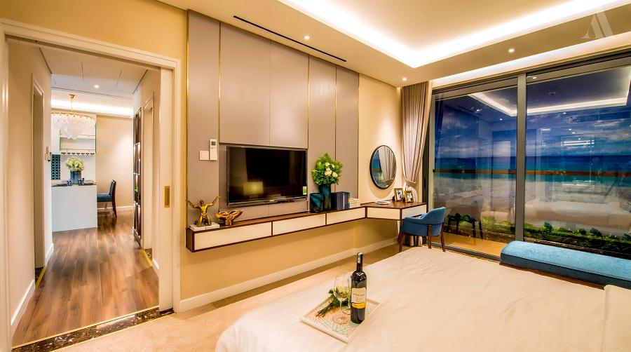 Nội thất trong mỗi căn hộ được thiết kế theo tiêu chuẩn deluxe – suite của khách sạn 5 sao. Ứng dụng công nghệ kiểm soát an ninh và quản lý thông minh, vận hành bởi thương hiệu quốc tế. Dự án có 4 Block Căn hộ Khách sạn Condotel với 2 block thấp 9 tầng & 2 block cao 30 tầng với tên gọi là Aqua Tower & Eden Tower.